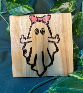 Set of 3 Ghost Coasters – Spooky Cute & Handmade with Love Add a dash of ghostly charm to your home with this pack of three hand-burned wood coasters, each featuring an adorable g...